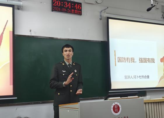 学院邀请退役大学生阿卜杜热合曼·图迪瓦柯、葛金龙、伊真夫、王超、叶力多斯·泽来、叶瑞航进行事迹宣讲。他们分享了在军营中的点点滴滴:从初入军营的懵懂与不适,到刻苦训练后的坚韧与成长;从与战友并肩作战的深厚情谊,到执行任务时的责任担当。他们的宣讲,让同学们深刻理解到“国防有我,强国有我”不仅是口号,更是每一位青年学子应当肩负的使命。