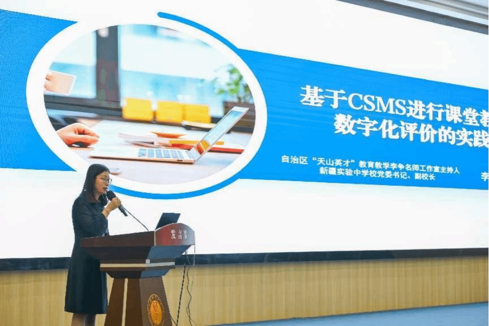 新疆实验中学党委书记李争对课堂教学数字化评价项目的背景、实践探索、存在问题及期望做了介绍,提出“新时代呼唤教学方式变革,教学方式变革的基点在课堂,课堂转型最核心的要素是老师。教师是课堂教学方式变革的‘能动者’”,鼓励教师积极运用人工智能课堂教学评价,“一起开启新时代的数智新教研,共同推动新疆教育教学质量的提升。”
